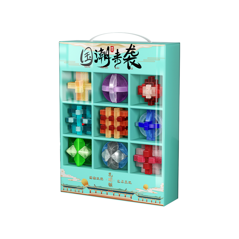 榫卯琼楼琉璃色孔明锁